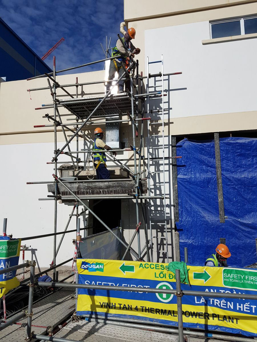 Thực hiện công tác an toàn nghiêm ngặt tại dự án: Giàn giáo được lắp đặt và nghiệm thu, cấp thẻ trước khi sử dụng.